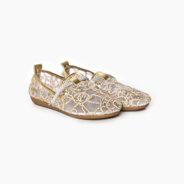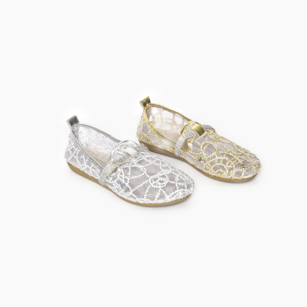 Sepatu Naomi casual one of a kind! Tampil lebih glamour dengan upper jaring dengan pilihan aksen silver atau gold.